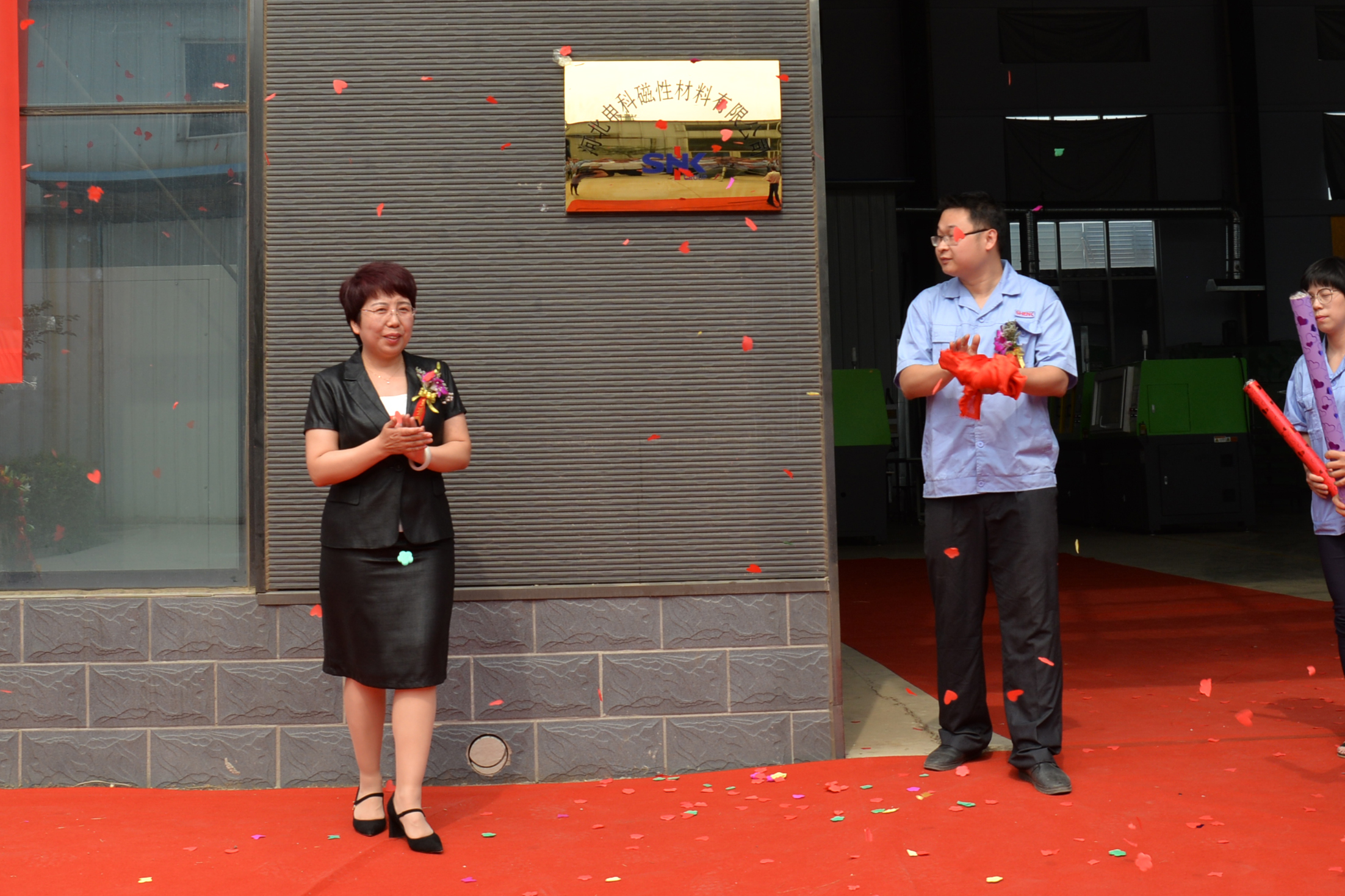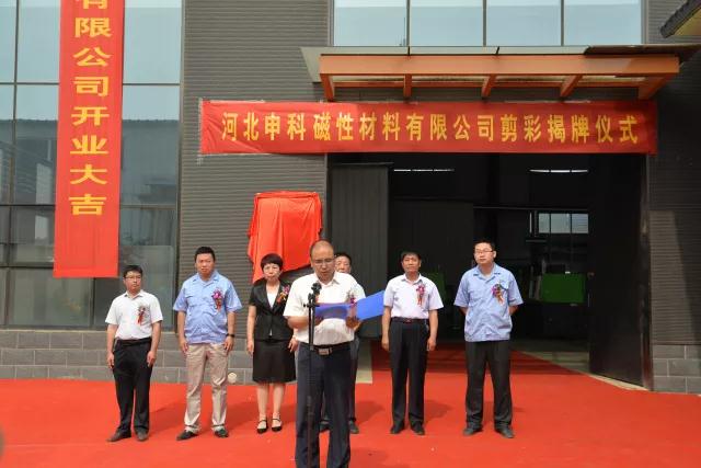 隨后,申科公司高層領導共同為河北申科磁性材料有限公司的成立剪彩,申科磁性材料有限公司董事長、總經理王茹與申科磁材公司生產運營副總經理曾望一同為公司揭牌。